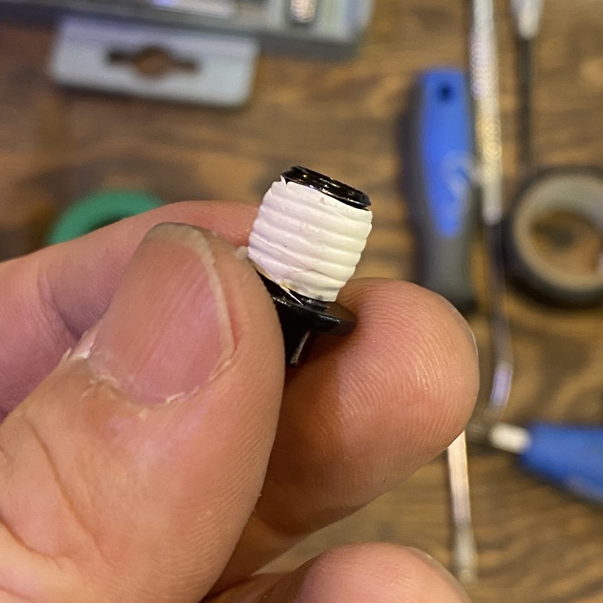 レバー側のねじ山をピッキングツールで結構傷つけてしまったので,ボルトに止水テープをこれでもかと巻いてホースをねじ込みました。何とかホースの接続を完了。本当に血の気が引きました。